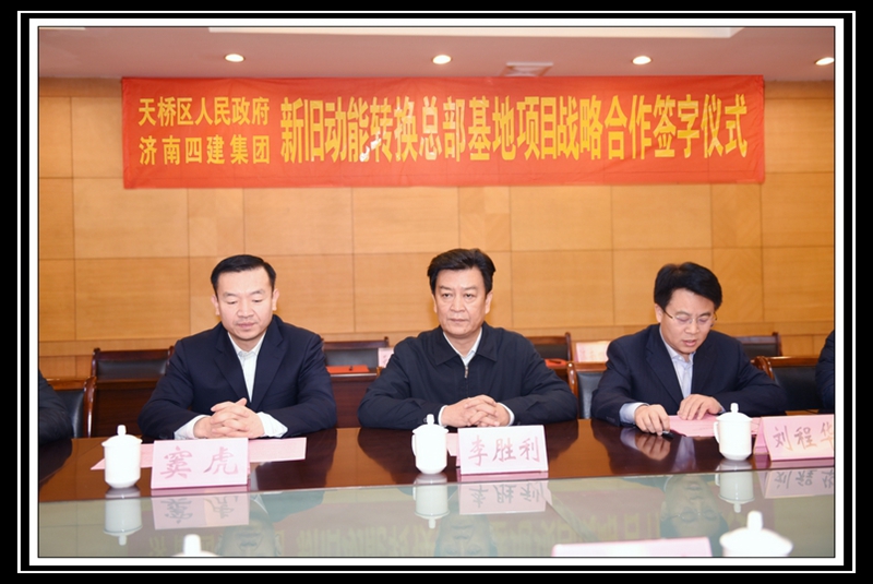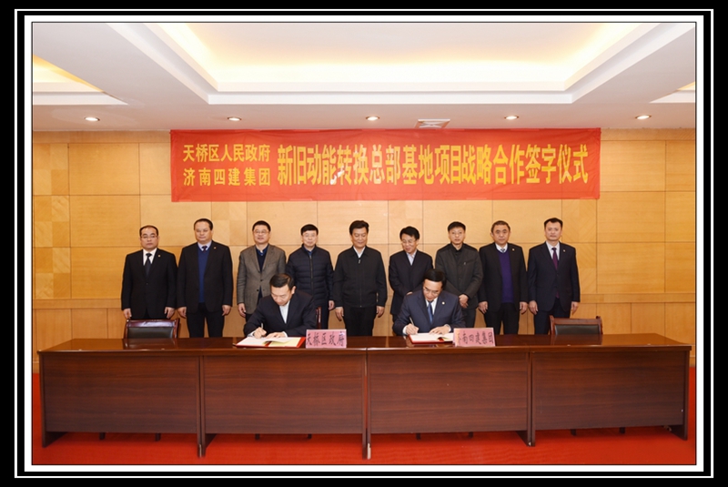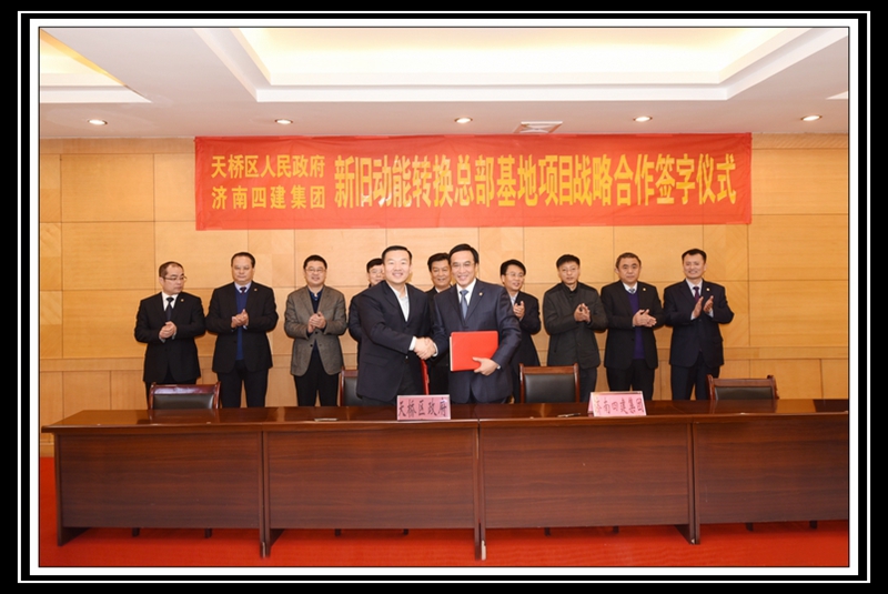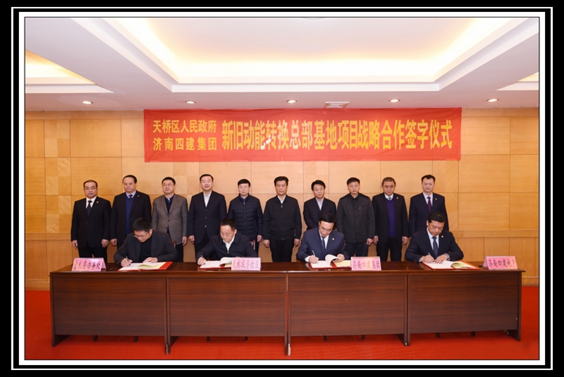 在各位領(lǐng)導(dǎo)的共同見證下,天橋區(qū)區(qū)委副書記、區(qū)長竇虎區(qū)長代表天橋區(qū)政府,曹曉巖董事長代表集團(tuán)公司,共同簽署《天橋區(qū)人民政府支持濟(jì)南四建集團(tuán)騰籠換業(yè)相關(guān)政策的協(xié)議》;濟(jì)南天橋投資控股有限公司董事長李敏杰,天橋區(qū)官扎營街道辦事處主任谷亞,集團(tuán)公司董事長曹曉巖,濟(jì)南四建集團(tuán)房地產(chǎn)開發(fā)有限責(zé)任公司總經(jīng)理徐洪濤,分別作為四方代表,共同簽署《天橋區(qū)人民政府、濟(jì)南四建集團(tuán)新舊動能轉(zhuǎn)換總部基地項(xiàng)目戰(zhàn)略合作意向書》。
