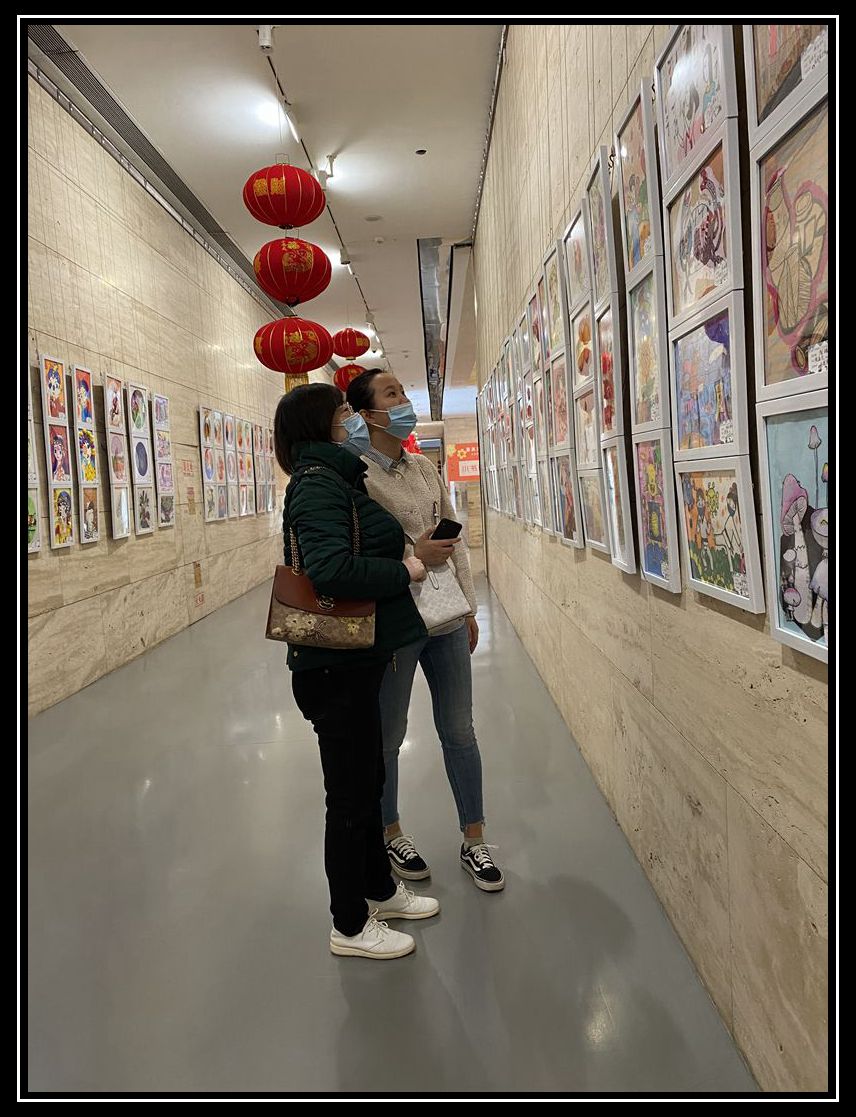 接著,大家來到二樓的國畫、油畫教室。在這里,靜靜地欣賞孩子們筆觸下精彩紛呈的世界,發(fā)現(xiàn)美、融入美、感受美。宋冬的《沒有人是一座孤島》作品,通過利用鏡面的反射原理為人們營造了一個魔幻空間,其中令人炫目的視覺效果,奇特的表達方式,作品中蘊含的價值信息,總會促使大家陷入沉思。