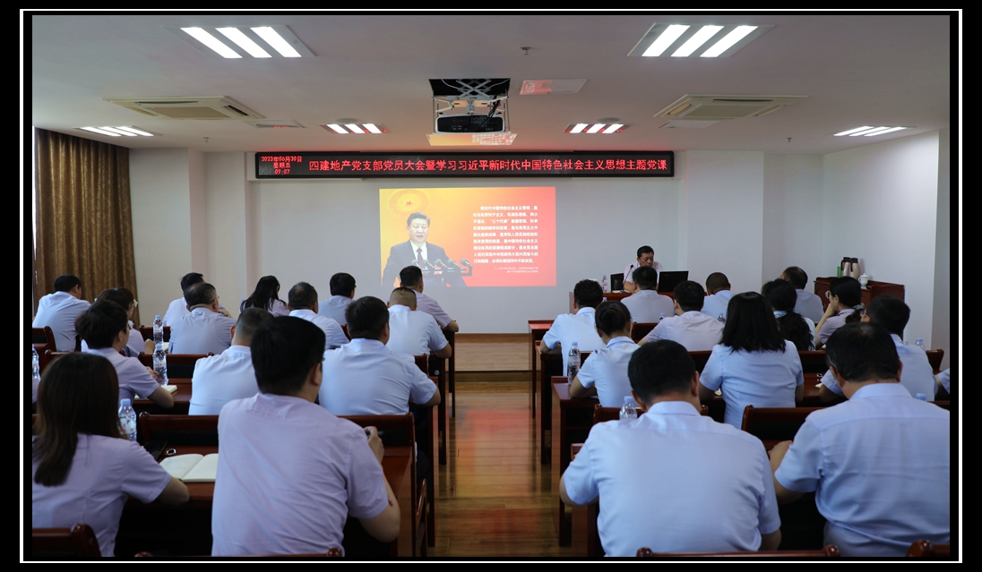 為深入學(xué)習(xí)貫徹習(xí)近平新時(shí)代中國(guó)特色社會(huì)主義思想,引導(dǎo)廣大黨員“學(xué)思想、強(qiáng)黨性、重實(shí)踐、建新功”,6月30日上午,四建地產(chǎn)黨支部組織開展黨員大會(huì)暨專題黨課。四建集團(tuán)黨委委員、四建地產(chǎn)黨支部書記徐洪濤同志以“習(xí)近平新時(shí)代中國(guó)特色社會(huì)主義思想學(xué)習(xí)導(dǎo)讀”為主題,為全體黨員上了一堂生動(dòng)黨課。本次大會(huì)共40名黨員參加,會(huì)議由地產(chǎn)支部副書記楊沖主持。